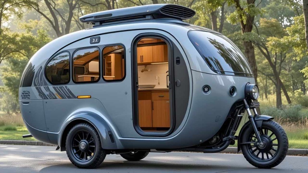 A simple vista su tamaño compacto sorprende por su distribución interior eficiente. Equipado con cama plegable, cocina pequeña extraíble, almacenamiento modular y luces LED de bajo consumo, el diseño logra transformar cada centímetro en funcionalidad sin perder confort. Además, la instalación de paneles solares en el techo y una batería recargable con asistencia eléctrica al pedaleo permite viajes casi autónomos, reduciendo significativamente la huella de carbono.