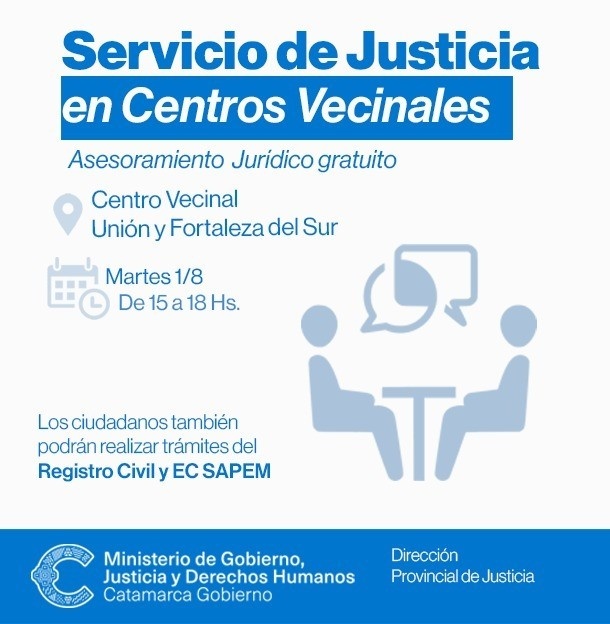 El evento se llevará a cabo en el Centro Vecinal Unión y Fortaleza del Sur y estará disponible de 15:00 a 18:00 el martes 1 de agosto. Allí, los ciudadanos tendrán la oportunidad de recibir asesoramiento legal y orientación para resolver sus inquietudes y conflictos jurídicos.